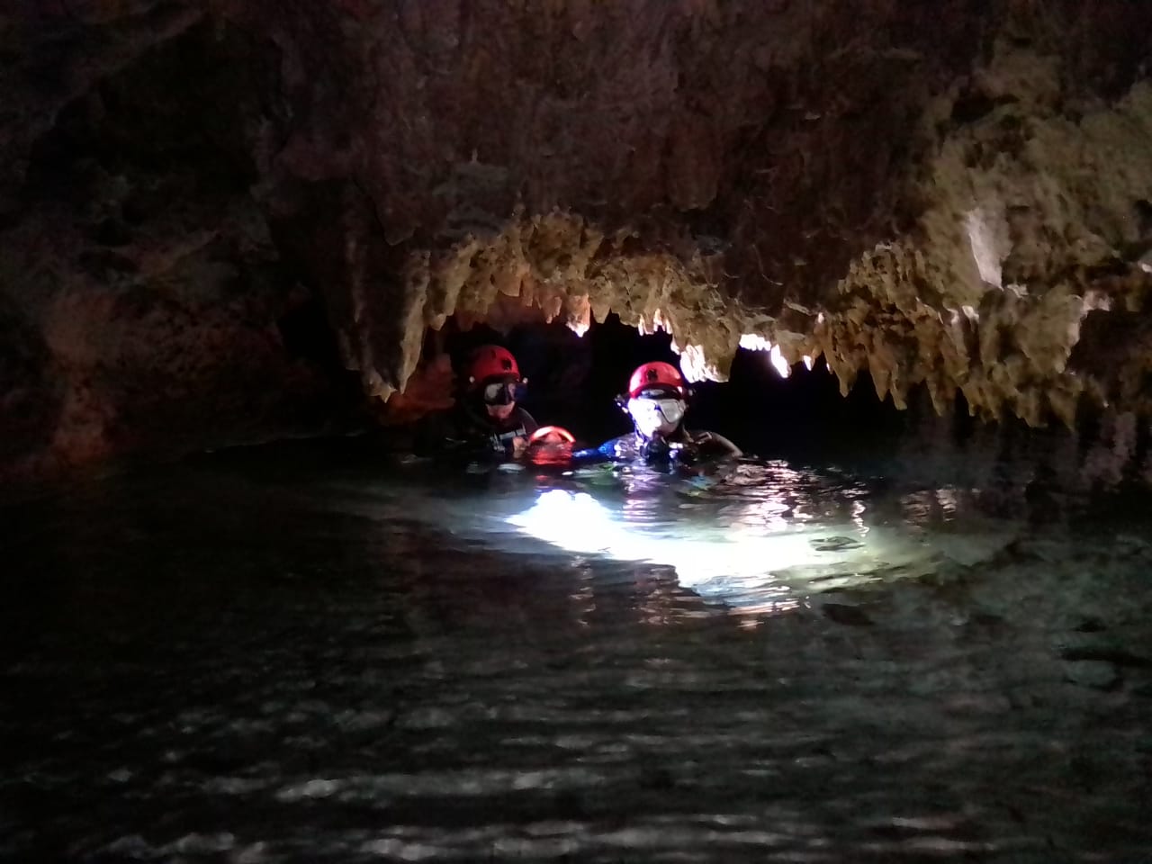 | 11.11.2024 | SCD Full Cave Kurs in Mexico abgeschlossen! Letzten Freitag Abend konnte gefeiert werden: der in der Schweiz begonnene Full Cave Kurs konnte nach einer ganzen Woche intensiven Uebens in den Cenoten von Tulum erfolgreich abgeschlossen werden. Wir gratulieren Raphi und Neville ganz herzlich zum Erfolg. Unser Dank geht auch an den Kursleiter Fredy für die tip-toppe Organisation und Walti für die tatkräftige Unterstützung. |